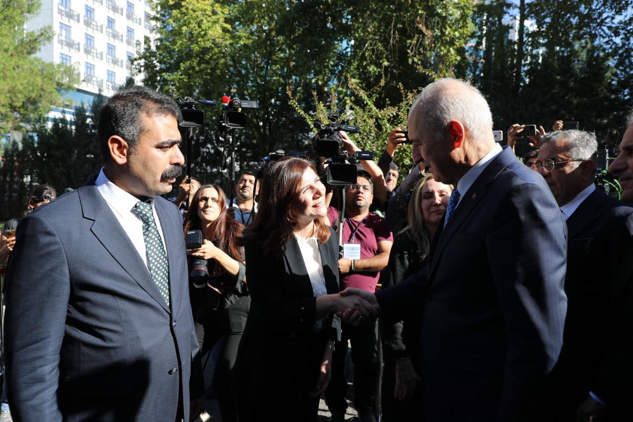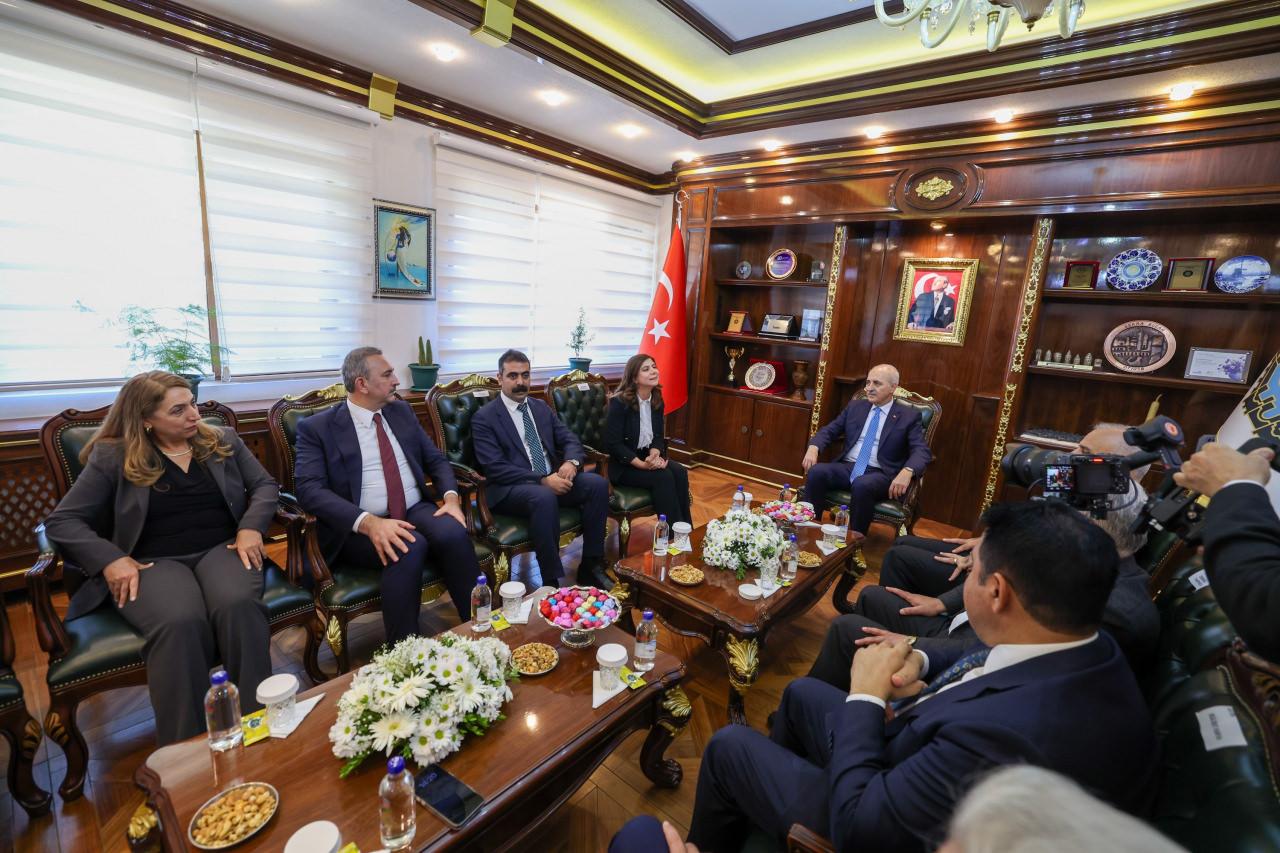 TBMM Başkanı Kurtulmuş, daha sonra beraberindeki milletvekilleriyle Diyarbakır Büyükşehir Belediyesini ziyaret etti.