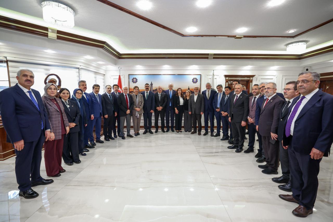 Beraberindeki parlamento heyetiyle toplantı salonuna geçen Kurtulmuş, Vali Murat Zorluoğlu’ndan kentte yürütülen çalışmalar hakkında bilgi aldı.