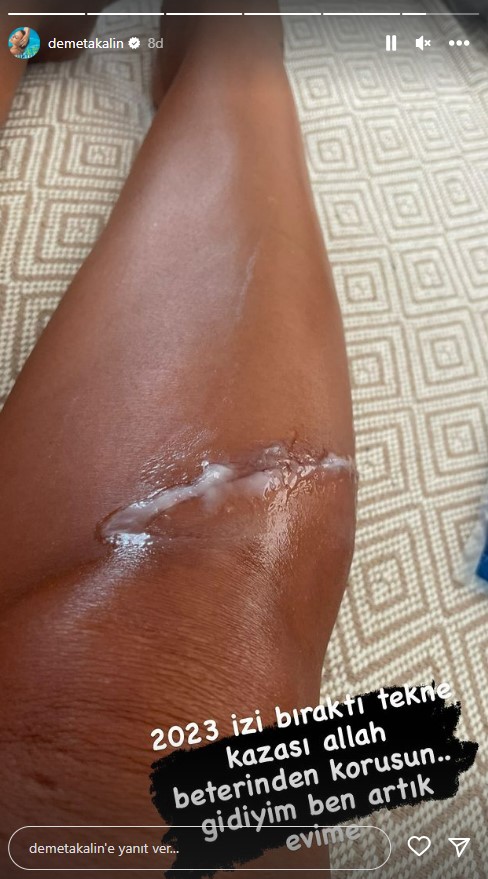 Önceki akşam Yalıkavak’ta konsere giderken tekne kazası geçiren Demet Akalın, sosyal medya hesabından yaralanan bacağını paylaşarak “2023 iz bıraktı” ifadelerini kullandı.