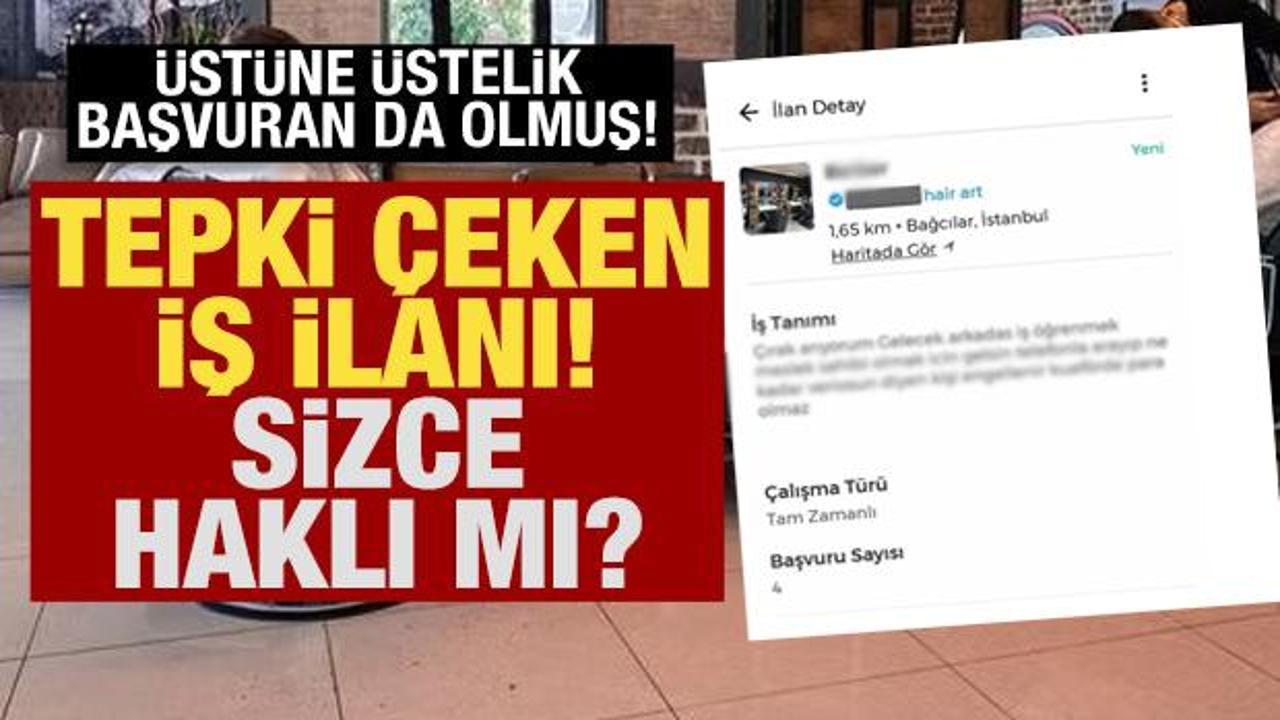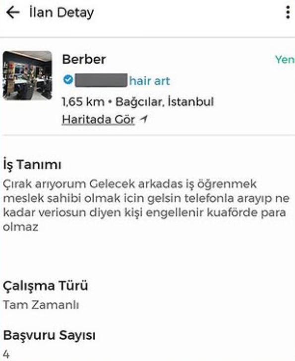 Son devirde iş ilanlarındaki bitmeyen talepler sık sık tartışma konusu oluyor. Emsal bir durum bu kere çıraklık için verilen bir ilanla gündeme geldi. İstanbul Bağcılar’da bir berberin paylaştığı çırak ilanı, kullanılan tabirler nedeniyle toplumsal medyada büyük yankı uyandırdı.