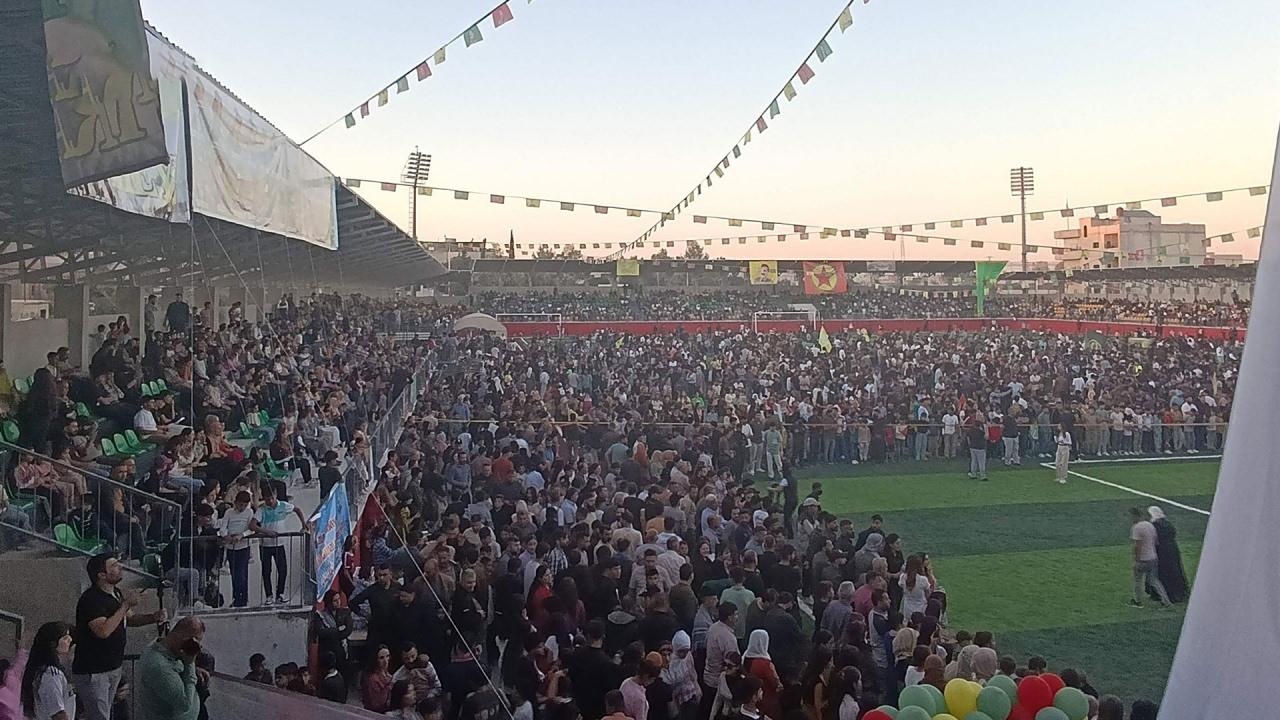 SDG’nin, “PKK farklı bir örgüt biz farklı bir örgütüz.” açıklamalarının tersine, stadyumda terör örgütü PKK elebaşı Abdullah Öcalan’ın fotoğrafına yer verilmesi de dikkatlerden kaçmadı.