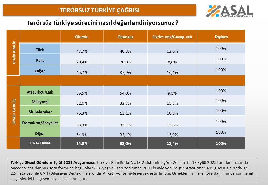 Asal Araştırma’nın Eylül 2025 anketi, “Terörsüz Türkiye” sürecine dair toplumun nabzını ortaya koydu.