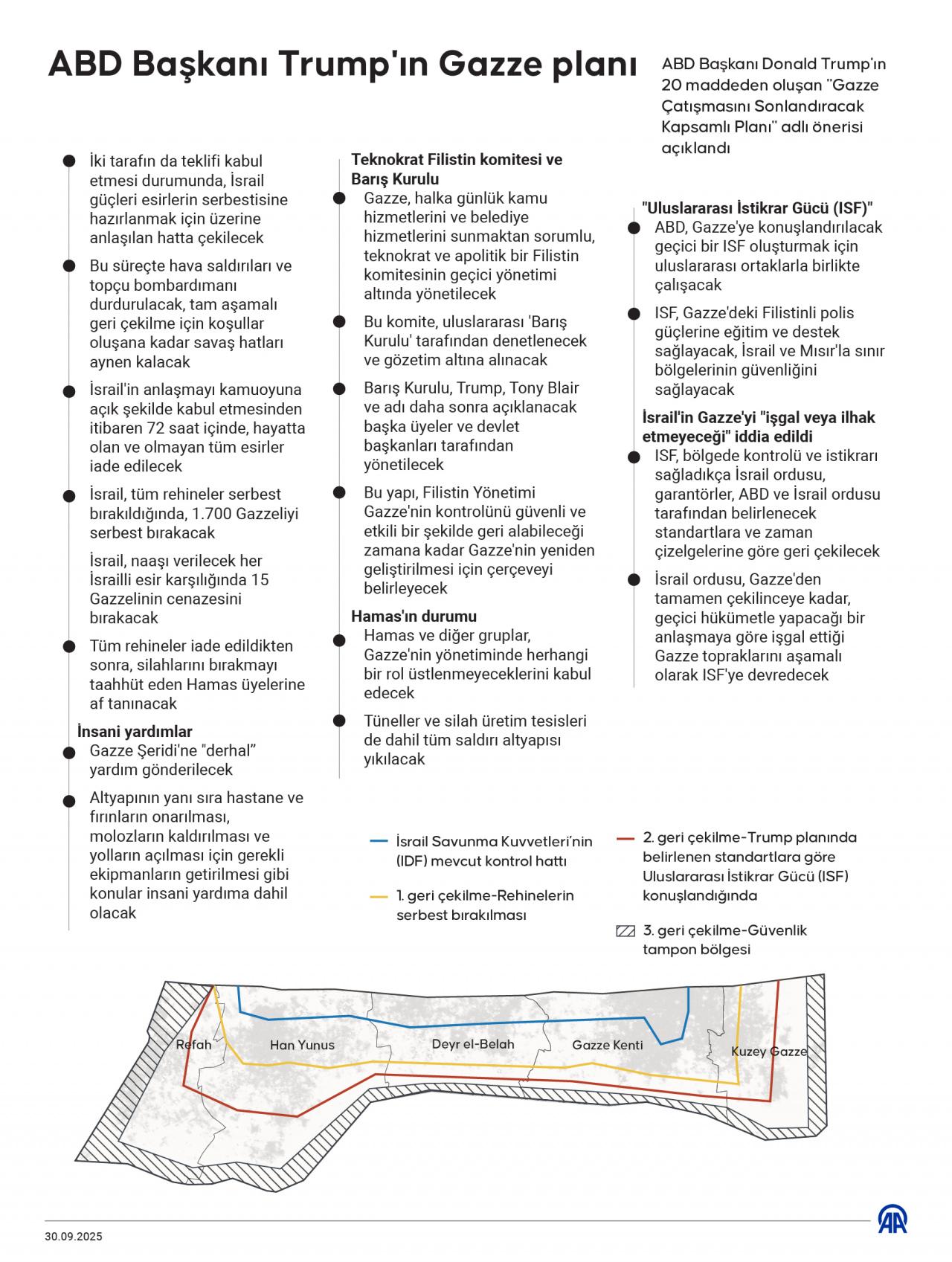 ABD Başkanı Donald Trump’ın 20 husustan oluşan “Gazze Çatışmasını Sonlandıracak Kapsamlı Planı” isimli önerisi 30 Eylül’de açıklandı.