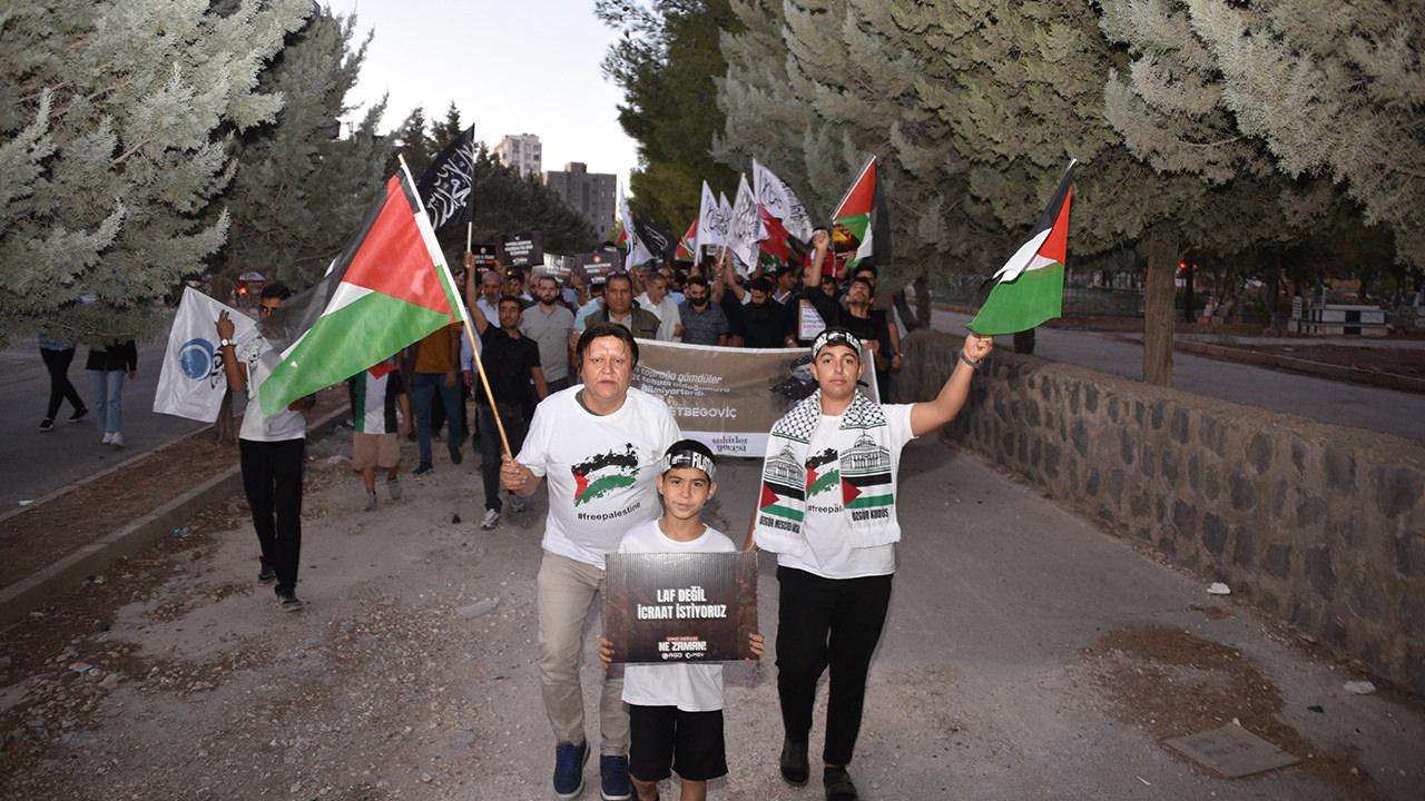 Türk ve Filistin bayrakları taşıyan vatandaşlar, tekbir getirip dua etti.
