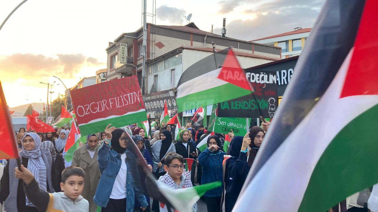 Burdur’un Bucak ilçesinde İsrail’in Global Sumud Filosu’na yönelik saldırısını protesto etmek emeliyle yürüyüş düzenlendi.