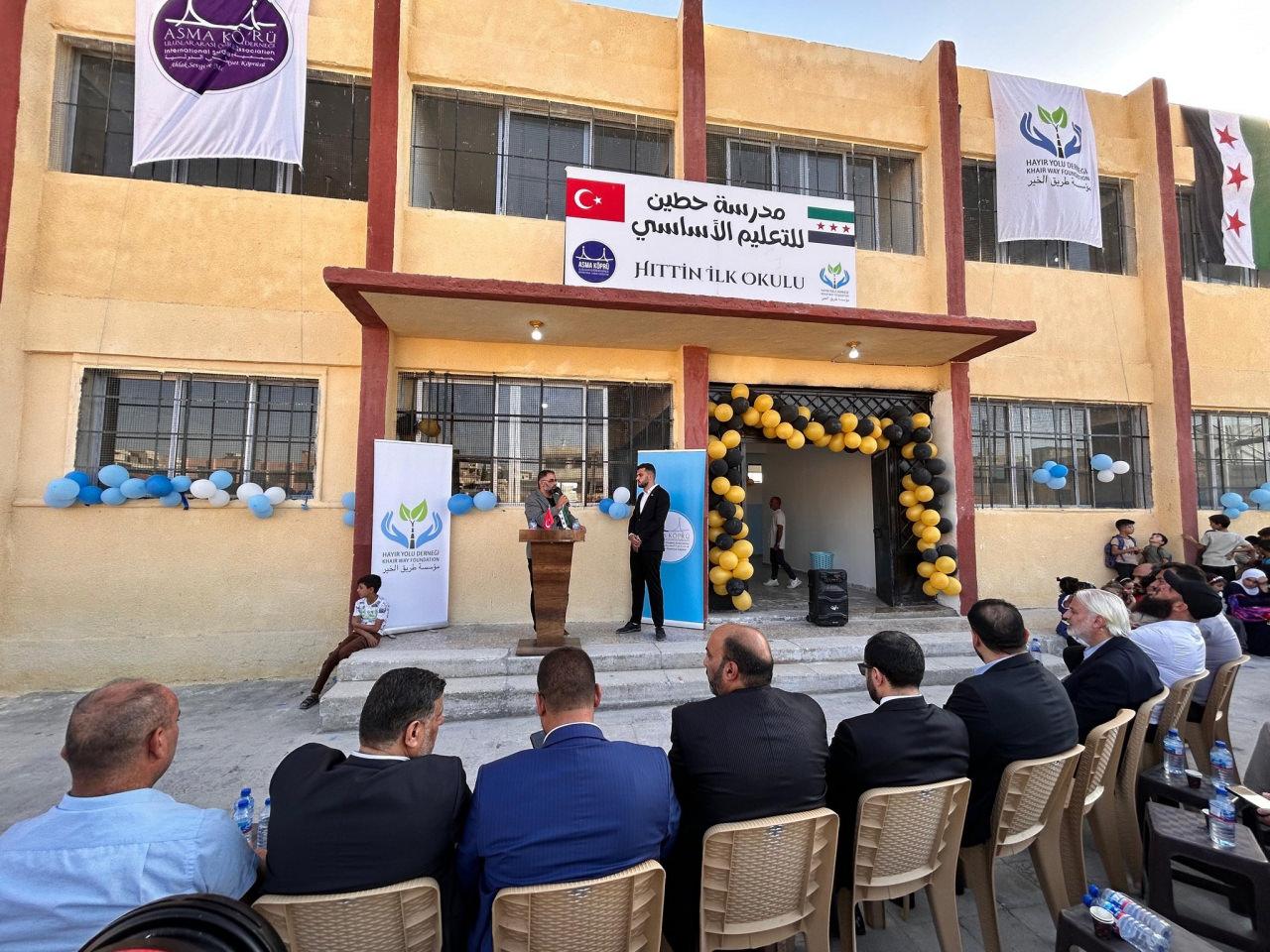 Suriye’nin İdlib vilayetine bağlı Han Şeyhun bölgesinde Asma Köprü Milletlerarası Öğrenci Derneği ve Hayır Yolu Derneği tarafından tadilatı tamamlanan Hıttin Okulu hizmete açıldı.