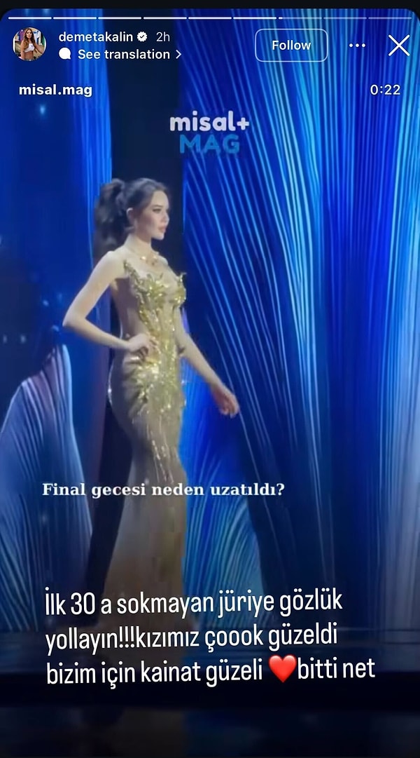 Miss Universe heyetine yüklenen Akalın, paylaşımlarında “İlk 30’a sokmayan heyete gözlük yollayın!!! Kızımız çok hoştu, bizim için zati kâinat güzeli” diyerek sitem etti.