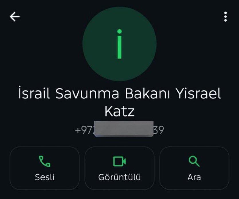 Bir Türk vatandaşı, İsrail Savunma Bakanı Yisrael Katz’ın telefon numarasını bularak imajlı arayarak ağzının hissesini verdi. Çarpıcı bir işe imza atan Türk, o anlara dair ekran imgesini paylaştı. Daha sonra siyonist Katz’ın telefon numarası da paylaşıldı.