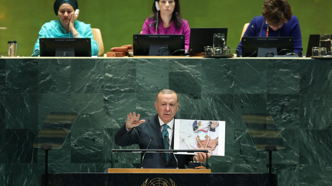 İsrail’i en sert yansıyı lisana getiren ülkelerden biri Türkiye oldu. Cumhurbaşkanı Erdoğan BM Genel Konseyi’nde yaptığı tarihi konuşmada Gazze’de yaşanan soykırımı sert sözlerle eleştirerek “Henüz 2-3 yaşındaki elleri, kolları, bacakları olmayan pak yavrucuklar bugün maalesef Gazze’nin olağan fotoğrafı haline gelmiştir. Hangi vicdan buna sessiz kalabilir? Bu, insanlığın taban noktasıdır. İnsanlık tarihi, son bir asırda bu türlü bir vahşet görmemiştir.” dedi. Erdoğan memleketler arası toplumu ivedilikle harekete geçmeye çağırdı.