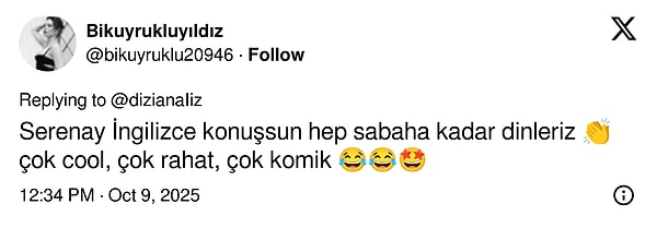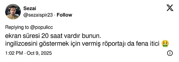 X kullanıcıları, hem Sarıkaya’nın İngilizce aksanını hem de seçtiği şarkıyı mizahi paylaşımlarla gündeme taşıdı.