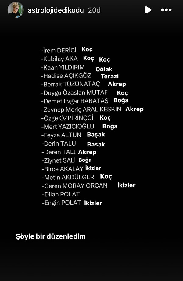 19 ünlü isim toplumsal medyanın gündeminden düşmezken Instagram’daki ‘astrolojidedikodu’ hesabından da astrolojik yorum gecikmedi.