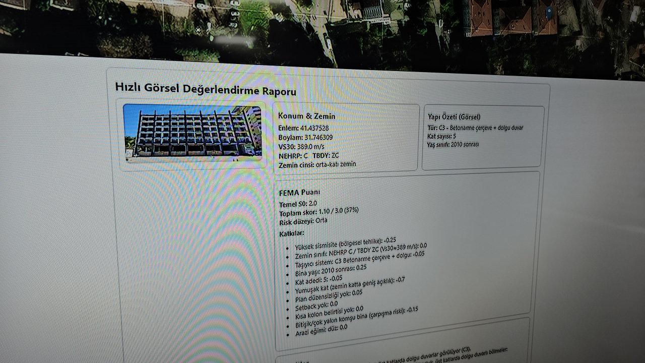 Bülent Ecevit Üniversitesi Mühendislik Fakültesi Geomatik Mühendisliği Kısmı Öğretim Üyesi Prof. Dr. Şenol Hakan Kutoğlu, yazılım grubuyla birlikte üniversite bünyesinde, binaların zelzele dayanıklılığını Amerikan AFAD’ı olarak bilinen Federal Acil Durum İdare Kurumu’nun (FEMA) geliştirdiği ‘hızlı bina değerlendirme’ formatında çalışarak ölçen yapay zeka takviyeli yazılım geliştirdi. Yazılım, binanın görselleri ve sistemdeki harita üzerinden bulunduğu yer seçilerek çalıştırılıyor ve yaklaşık 5 dakika süren tahlilin akabinde, yapay zeka kıymetlendirme raporunu kullanıcıya sunuyor. ‘Hızlı bina değerlendirme’ formatının zelzele dayanıklılığını belirlemek için birinci basamak olarak kullanıldığını söz eden Prof. Dr. Kutoğlu, insanların binalarına ayrıntılı testler yaptırmadan evvel ön bilgi edinmek için bu yazılımı kullanabileceklerini belirterek geniş web sunucusu planlamalarından sonra kullanıma açacaklarını söyledi.