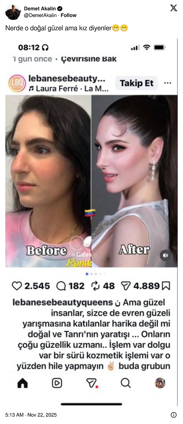 Meksika hoşu Fatima Bosch değil, Venezuela güzelinin eski halini gösteren bir görüntü paylaşan Demet Akalın, ‘Nerede o doğal kız fakat diyenler!!!’ diyerek yanlış kıza laf soktu!