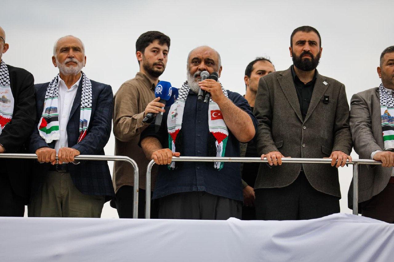 Basın açıklamasının akabinde İHH İnsani Yardım Vakfı Genel Başkanı Bülent Yıldırım konuşma yaptı. İşgalci İsrail’in Gazze’ye yönelik ablukasını yıllardır havadan, karadan ve denizden kırmaya çalıştıklarını söz eden Yıldırım, “Mavi Marmara ile başlayan sürecimizde yeryüzünde ablukayı kırmak için uğraştık. 2008 yılından itibaren kurulan Ambargoyu Kaldırma Komitesi olarak karadan, denizden ve havadan yeryüzü ittifakıyla din, lisan, ırk ayırımı yapmaksızın mazlum Filistin halkının yanında olmaya karar verdik. Akdeniz’de şehitler verdik. Dayağı yalnızca Müslümanlar olarak değil, bütün dinlerden beşerler olarak yedik fakat vazgeçmedik. Geçen yıl gemileri aldık. Kimileri diyor ki gemiler nerede? Gemilerden Vicdan Gemisi kısa mühlet evvel ambargoyu delmek için yola çıktı. Malta’da iki tane dronla vuruldu. Avrupa bunu çok uygun gündem yaptı fakat ne yazık ki Türkiye’de medya bunu görmedi” şeklinde konuştu.